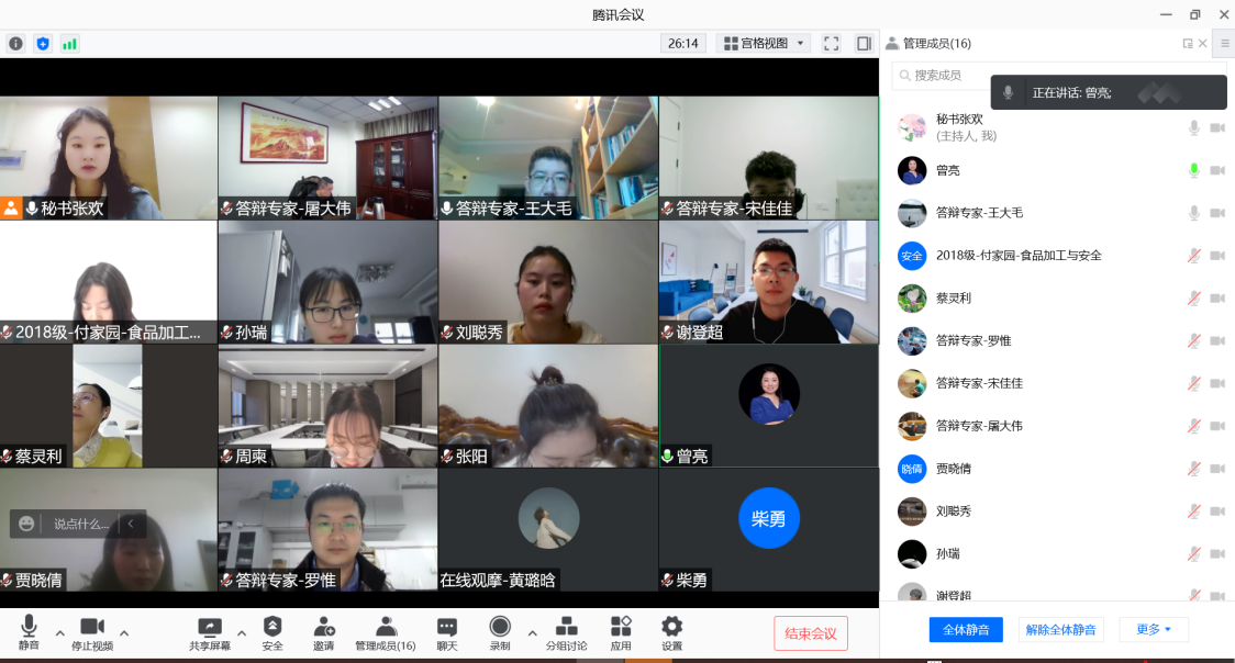 由于疫情反复,老王磁力部分毕业生身处疫情防控地区,结合实际情况考虑,11月19日老王磁力开展了特殊时期硕士、博士论文线上“云答辩”。答辩邀请到南昌大学聂少平教授、内蒙古农业大学孙志宏教授、哈尔滨商业大学张娜教授、华南理工大学游丽君教授以及重庆市农业科老王磁力