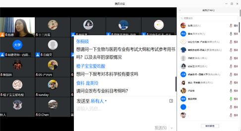 成立招生宣传工作小组,精心策划、综合运用新技术和新手段,带来了一场充实而精彩的网络云端宣讲会,也是网络时代推进招生宣传工作一种新的思路。宣讲会上,许多有意向报考的同学都积极提问和询问老师的联系方式,与老师增进了联系。