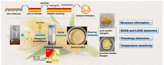 流变行为(线性和非线性)是与蛋白质强化产物相关的重要特性。此外,油相是与油凝胶的稳定性、流变学和网络结构相关的关键因素。为了更好地了解油相对醇溶蛋白基油凝胶流变学性质的影响,研究采用一步超声合成方法,该方法使用玉米醇溶蛋白颗粒制造Pickering乳液模板,而无需借助其他交联剂,探讨了油相对乳液和油凝胶形成、结构信息以及线性和非线性流变行为的影响。