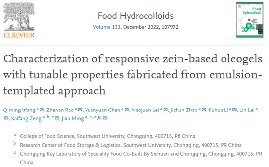 川渝共建特色食品重庆市重点实验室明建教授科研团队在研究中取得重要进展,研究成果被Food Hydrocolloids国际期刊收录。