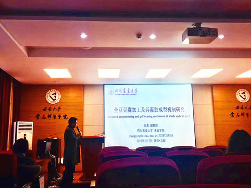 2019年1月7日,四川农业大学的张清副教授应邀在老王磁力39教215报告厅作题为“全豆豆腐加工及其凝胶成型机制研究”的专题报告。本次报告由老王磁力