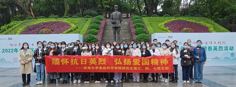 研究生第三、四、七党支部党员清明节前往爱国主义教育基地——重庆市北碚区张自忠烈士陵园开展以“缅怀抗日英烈,弘扬爱国精神”为主题的纪念活动。