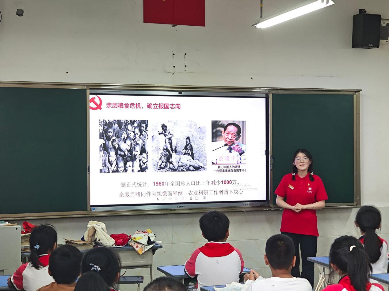 研究生党员李晓琳同志通过“境外间谍情报机关窃取我国杂交水稻亲本种子资源”案例,将农业种质资源安全、粮食安全、大食物观和国家安全等思政内容润物无声地融入小朋友课堂。同时,李晓琳同志建议孩子们养成节约粮食、珍惜粮食的良好习惯,用实际行动贯彻落实习近平总书记关于“坚决制止餐饮浪费行为,切实培养节约习惯”的重要指示,共同维护粮食安全、拒绝“舌尖上的浪费”!