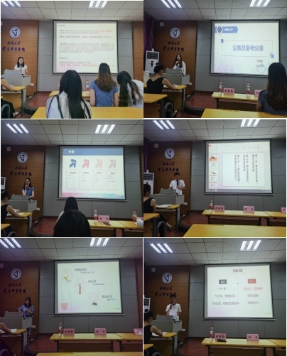 2019级食品科学专业的洪晴悦为大家带来了公务员考试的经验。她分享了国家公务员考试的基本情况,建议同学们根据自己的情况与需求,认真选择目标岗位。随后,洪晴悦推荐了一些信息查询网站,以便于提前了解招考信息。最后,她分享了笔试、面试的复习方法,提出应合理分配复习时间、了解岗位详情、提炼答题思路、加强实战训练、考前汇总整理、日常关注官媒时政。