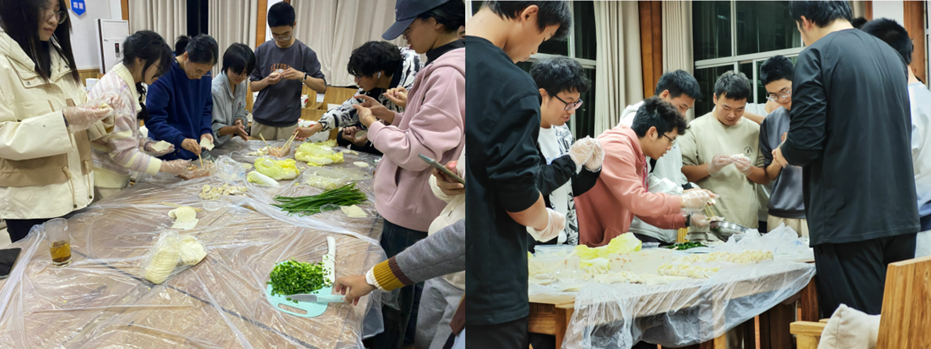 接着大家明确分工,由班委们负责场地布置和后勤保障;同学们则被分为四个小组,分别负责洗菜切菜、拌饺子馅、调配料以及煮饺子的工作。品尝到热气腾腾的饺子时,每位同学的脸上都洋溢着快乐与幸福,大家的付出得到了最好的回报。寒冷的冬日也因为同学们的相聚而变得温暖。