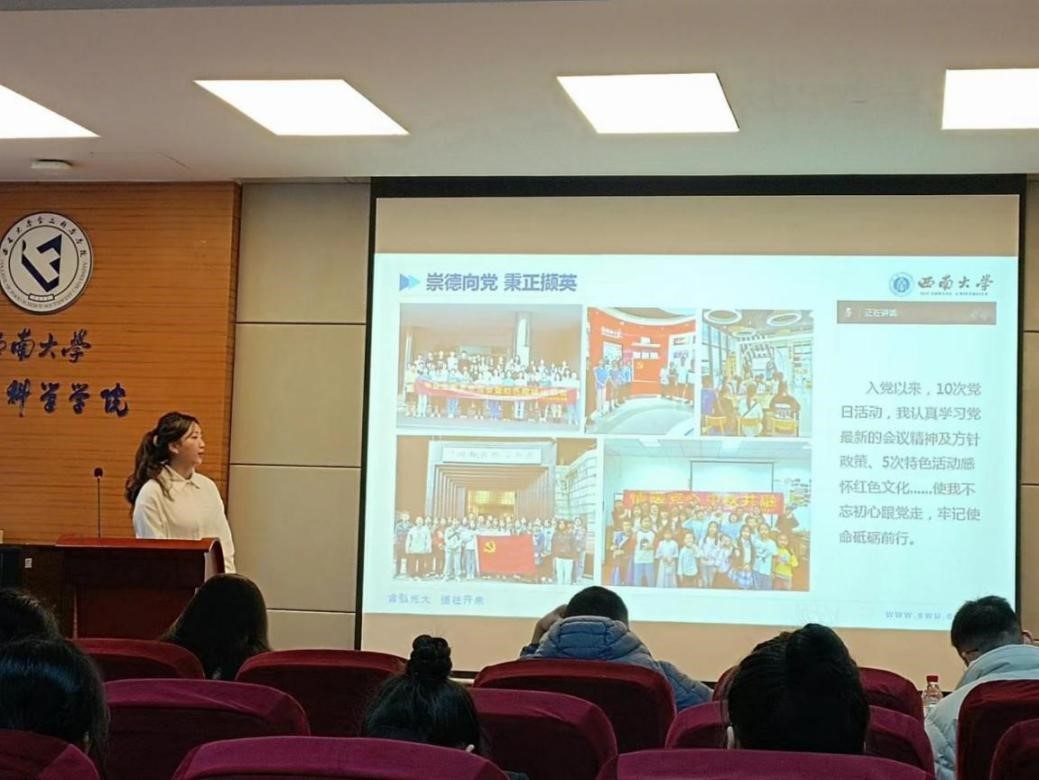 在39教215室举办了重庆市高校学生先进评选答辩会。本次会议由2021级辅导员夏雪主持并兼任评委,2020级辅导员杨希、2023级辅导员方令、2023级班主任孙康及各年级学生骨干出席担任评委。