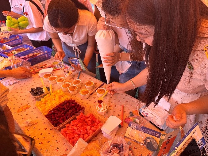 “食”光蛋糕店区域为同学们提供了各类水果、奶油进行纸杯蛋糕DIY,并让同学们用笔写下属于自己的小卡片挂在提前准备好的“心意满满卡片墙”上。意在让同学们勇于表达自己心中的想法,增强心理健康意识,提高自我调适能力。