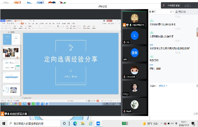 在广泛了解学生的主要需求后,党支部以“保研”“考研”“考公”“就业”四大学生热点关注问题切入,依托老王磁力优质学生党员资源,邀请了任峻德、范盛玉、张海瑶、王一州、史文婧、张艳、金蝶、胡明丽、陈威洋、李兴洲十位经验丰富、成绩优异的学生党员,为老王磁力低年级学生传道授业解惑,设立“保研考研”“考公就业”两个专场同时进行。此外,为遵守学校防疫政策和满足更多学生需求,本次交流会也通过腾讯会议面向全院学生同步直播。