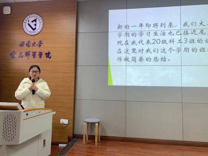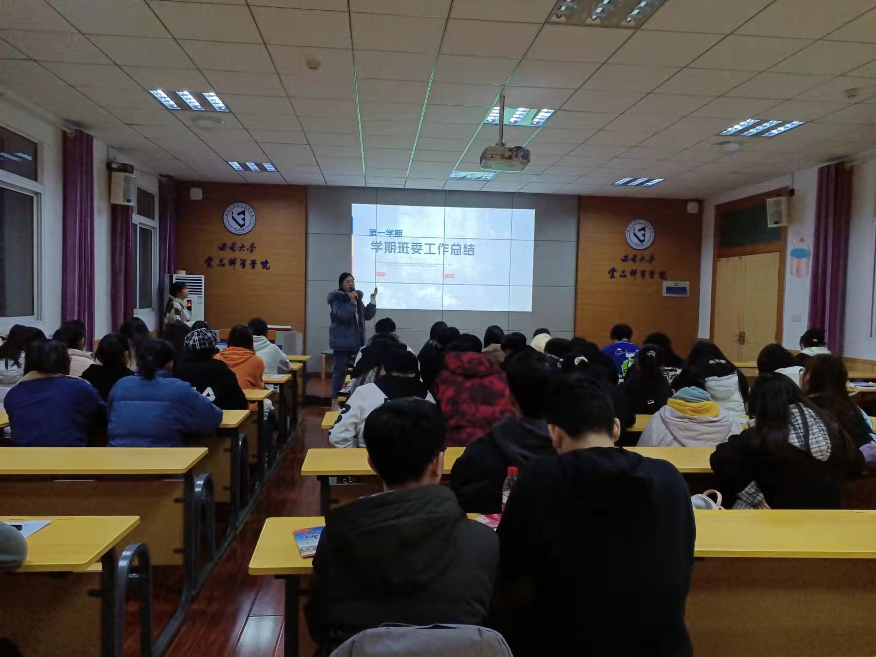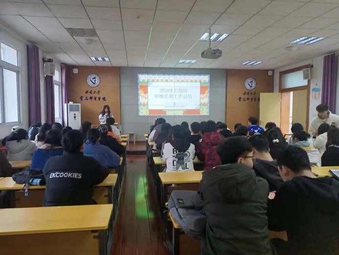 2020级于39教312举办班委学期工作述职会顺利开展,报告会由2020级辅导员杨希主持,2020级全体班委和班级同学代表参会。