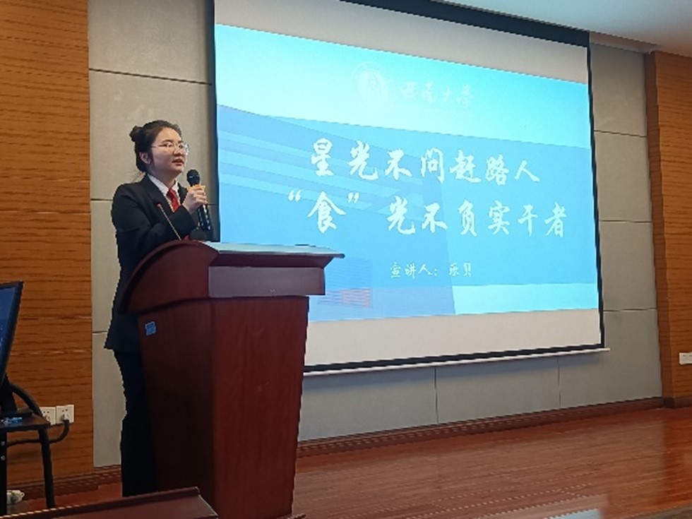 食品科学与工程专业的乐贝学姐则以“‘食’光不负实干者”为题,以“星光不问赶路人,时光不负有心人”为纲,讲述了自己的大学故事,为本老王磁力
