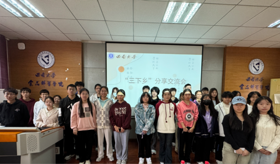 活动过程中,梁清棋学姐分享了暑期前往重庆市南川区德隆镇开展的“小茶叶,大世界”主题的三下乡社会实践活动,通过本次实践,同学们了解了德隆传茶文化的传承发展现状,体会了南川德隆镇的乡土情怀。校级小分队代表他锡涛学长则分享了在云南“三下乡”探究野生菌的实践经历。他提到,团队前往易门、昆明等多个地点,通过参观野生菌博物馆、野生菌市场与食用野生菌研究所等,了解了野生菌的独特魅力与产业发展现状。最后,主持人对此次“三下乡”活动优秀小队,优秀个人进行公布,并鼓励同学们再接再厉。