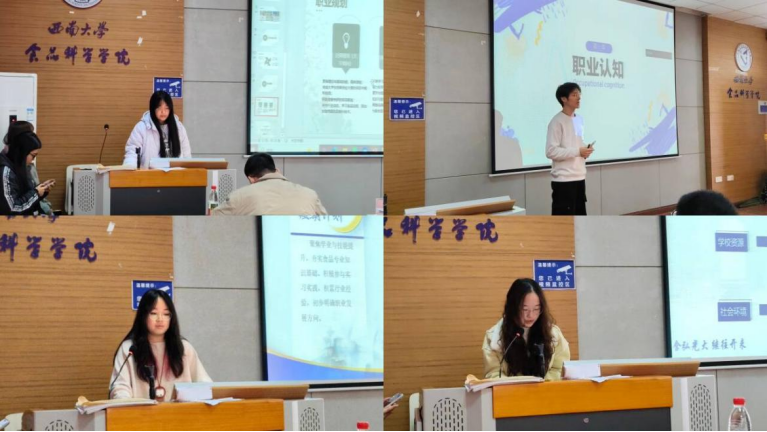 比赛现场,选手们紧扣自我认知、职业认知、执行计划、调整评估四大核心维度,结合食品专业特色剖析个人与目标职业的适配性,清晰勾勒成长路径,充分展现了对职业发展的深度思考与投身目标行业的青春热忱。经综合评比,最终本科生成长赛道11名、研究生就业赛道4名、本科生就业赛道4名同学成功晋级校级初赛。
