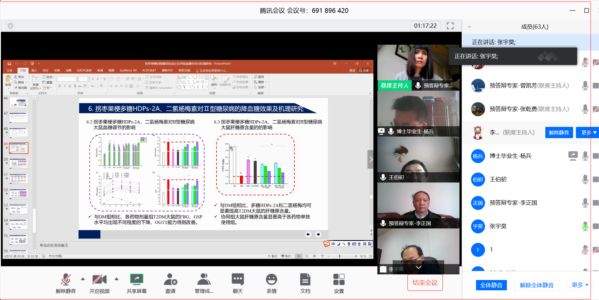 “感谢各位老师参加我的答辩,特殊时期我特别感动。我的答辩主题是‘ 拐枣果梗的降糖活性成分及其降血糖作用与机理研究’……”随着杨兵的论文陈述,预答辩时间开启。