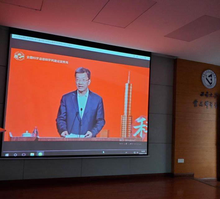 全体师生以坚守学术诚信、传承优良学风的学习态度全程收看了在北京举办的2020年全国科学道德和学风建设宣讲教育报告会暨宣传月启动仪式视频直播。