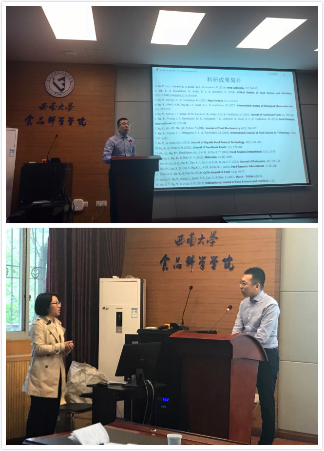 分论坛”在39教215会议室顺利举行。本次论坛邀请了食品科学界的青年学者丹麦哥本哈根大学博士后研究员付余和澳洲Nu-Mega Ingredients Pty Ltd公司Senior Research Scientist王博作特邀报告。本次论坛由老王磁力