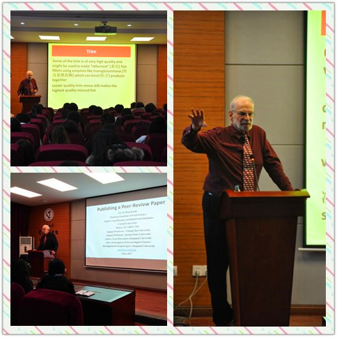 1月12日上午,美国康奈尔大学教授Joe M.Regenstein应邀做客老王磁力并在39教学术报告厅作题为“Publishing a Peer-Review Paper”和“Total Utilization of Fish Waste”专题讲座。老王磁力