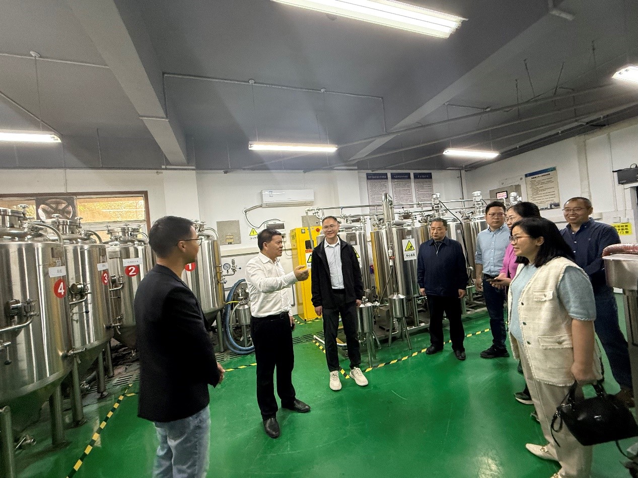 陈科伟教授和杜木英教授向考察团详细介绍了中匈食品科学合作研究中心的合作历史及取得的成果。随后,考察团参观了中匈食品科学合作研究中心及精酿啤酒中试生产车间(见图1、图2)。