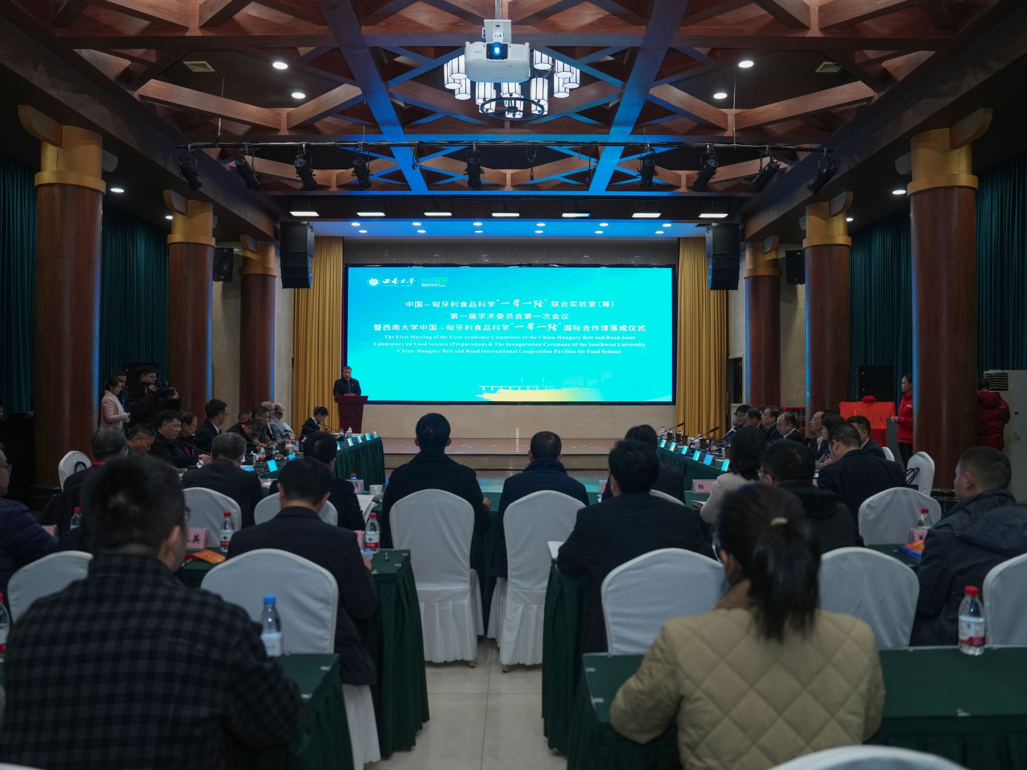 中国—匈牙利食品科学“一带一路”国际合作馆落成仪式在学校举行。会议围绕中匈食品科学领域科技合作与交流,聚焦联合实验室(筹)建设与运行机制,系统推进双方在相关领域的协同创新与务实合作。来自重庆市有关部门、匈牙利驻重庆总领事馆、中国食品科学技术学会以及中匈双方高校、科研机构的领导与专家代表参加活动。